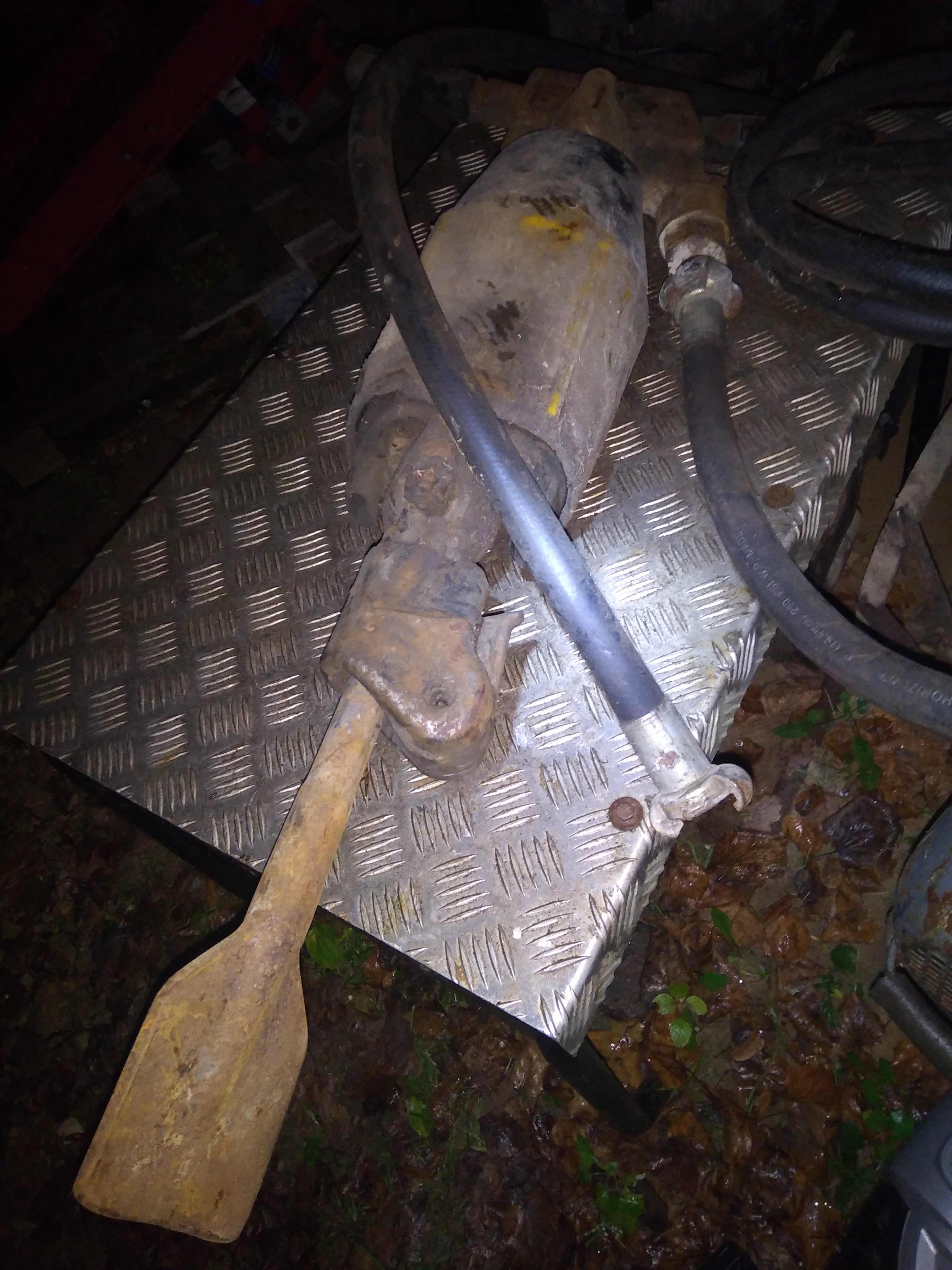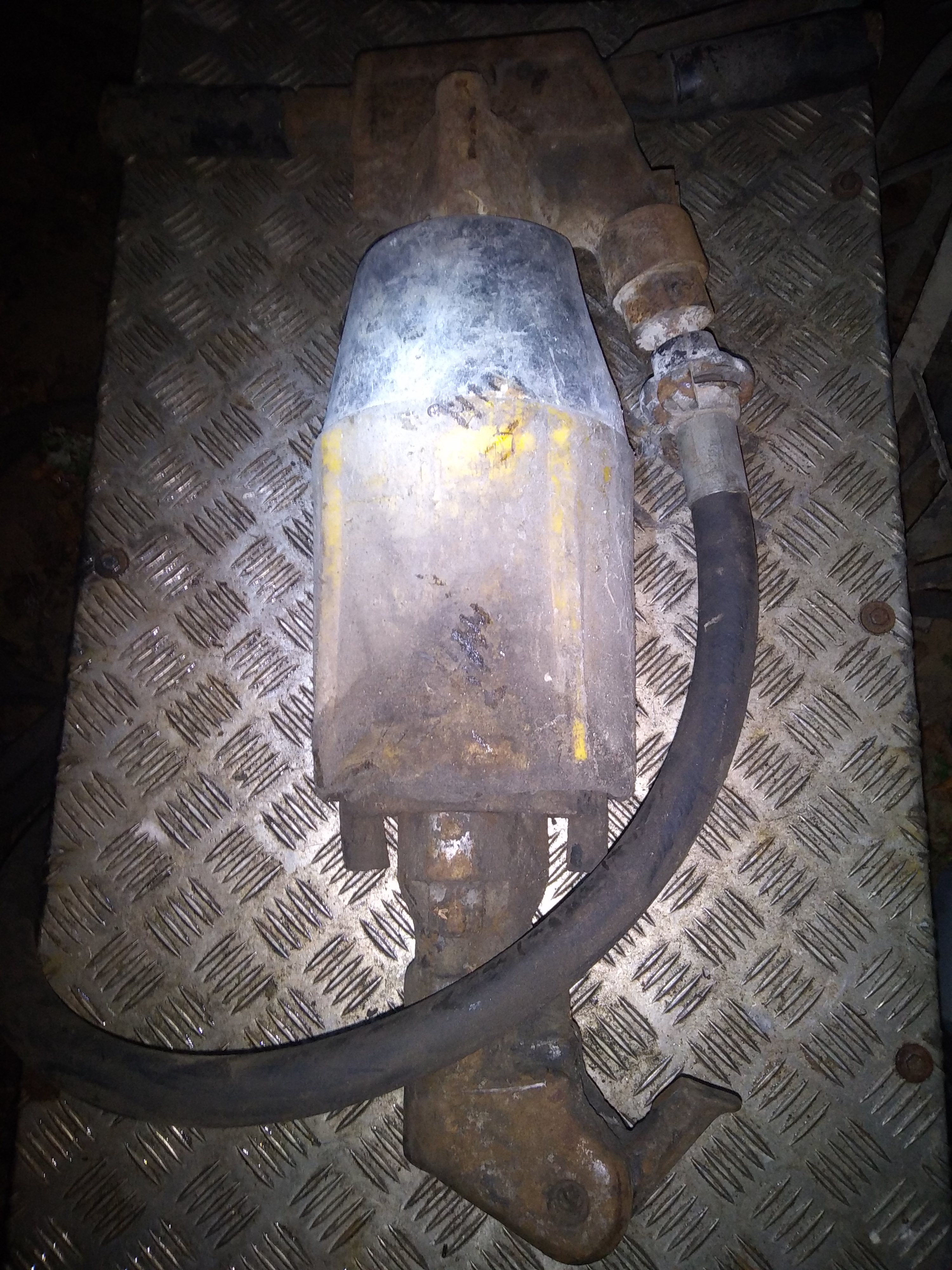 Pārdod jaudīgu atskaldāmo āmuru, komplektā ar 10 dažādiem kaltiem. Modelis un gads nav zināms. Pievadcaurule uz 1 collu.