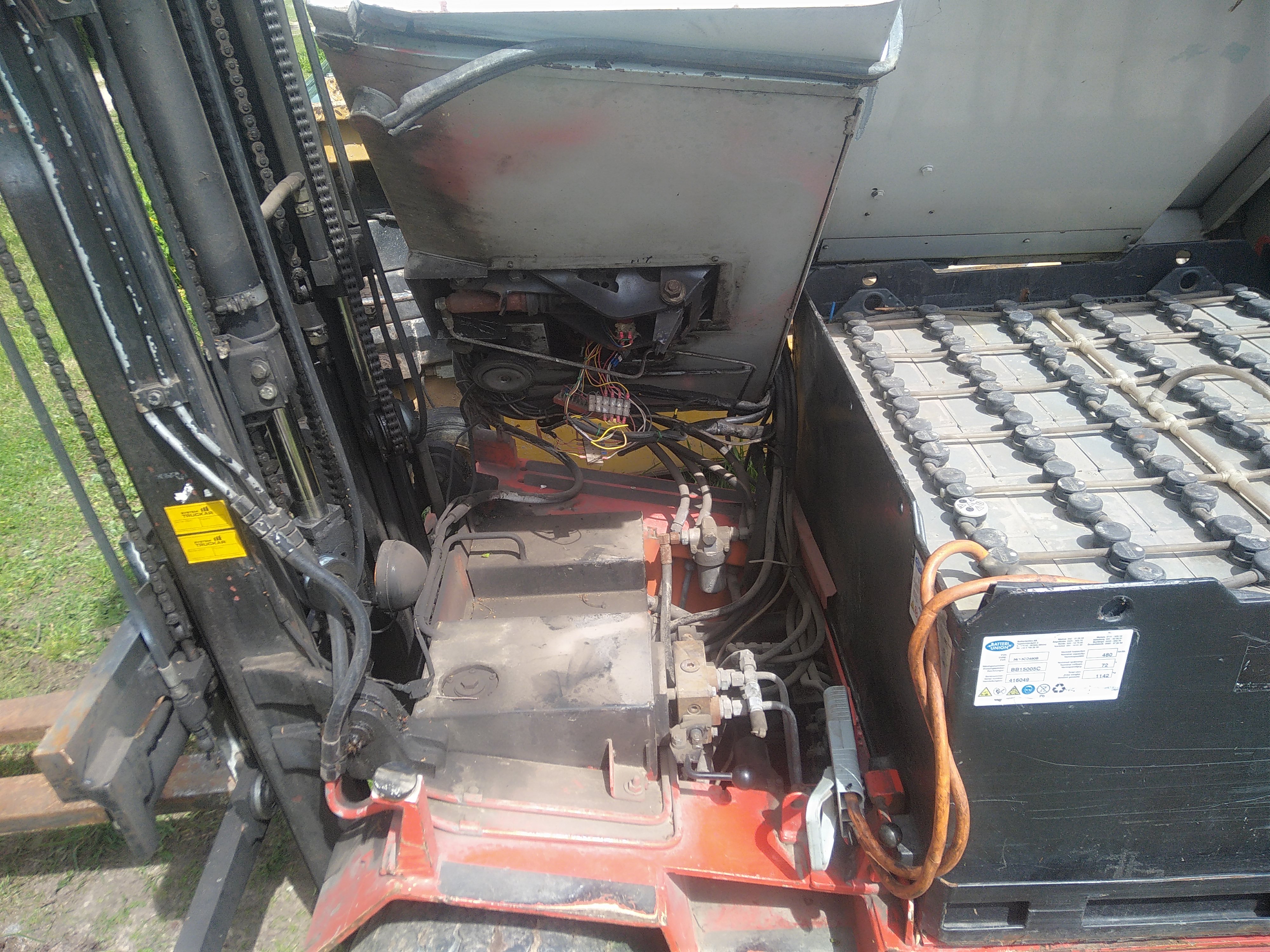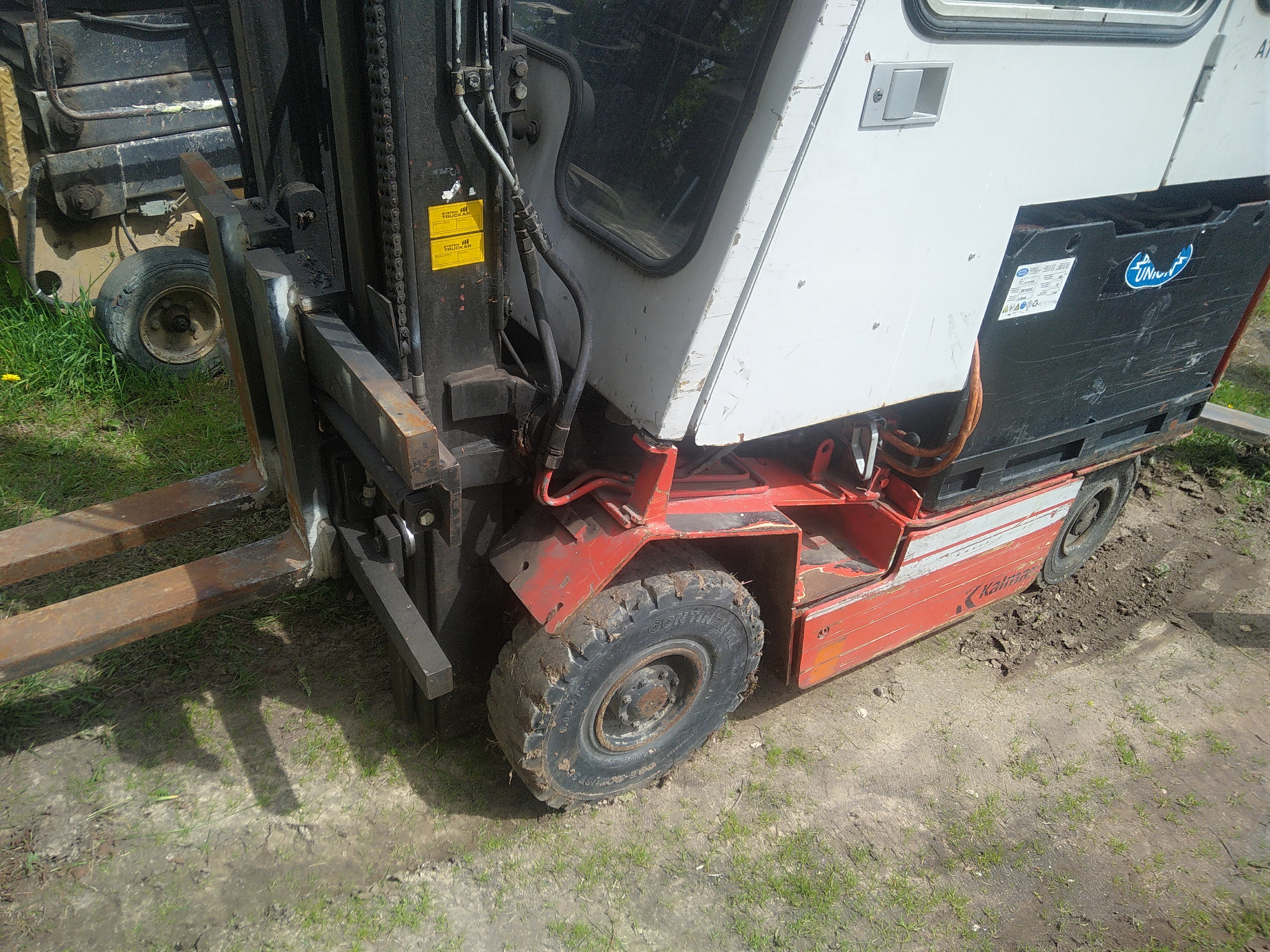 2t celtspēja. Hidrauliski bīdāmas dakšas. Augstais (5m) trīsdaļīgais masts. Baterija liekas ļoti dzīva un komplektā ar lādētāju. Stūre viegla. Tikai viena problēma - nebrauc ne uz priekšu, ne atpakaļ. Pārdod tāds, kā ir, vai meklē meistaru, kas varētu saremontēt.